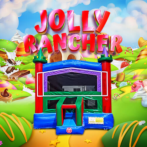 The Jolly Rancher Bounce House: This is a 6 hour rental. A $100 non-refundable retainer fee is required. Dimensions: L 13' x W 13' x H 15' Required Setup Space: L 18' x W 18' x H 20' Maximum Users: 6-8 Children Basketball Hoop 100ft Extension Cord Provided Note: